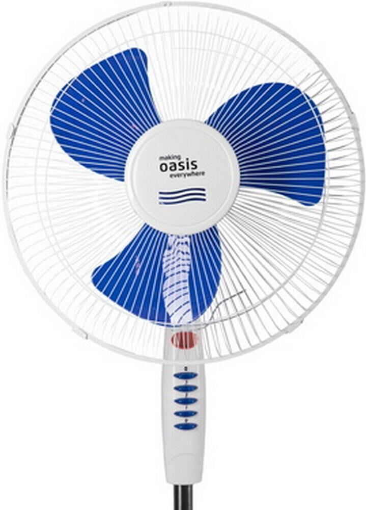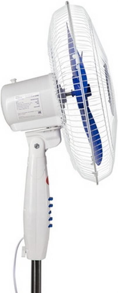 Напольный вентилятор Диаметр лопастей 35 см / Три скорости вращения / Регулировка угла наклона / Максимальная высота 120 см / Встроенная подсветка / Напольное исполнение / Цвет: белый+синий / кол-во в упаковке: 4 шт