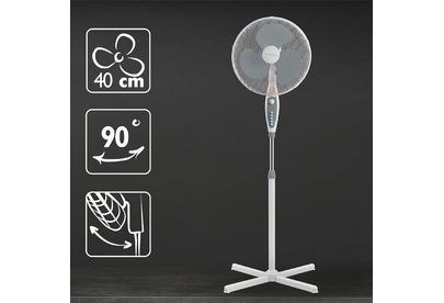 Тип: Напольный Мощность, Вт: 40 Количество скоростных режимов: 3 Диаметр лопастей, см/дюймы: 16/40 Вертикальная регулировка, градусы: 30 Горизонтальное вращение, градусы : 90 Защитная сетка/решетка: Высококачественная защитная сетка Таймер, мин: 60 Максимальная высота, см : 125 Ночная подсветка: Да Цвет: Серый