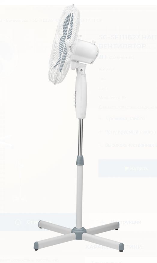 Вентилятор SCARLETT SC-SF111B27 белый с сером