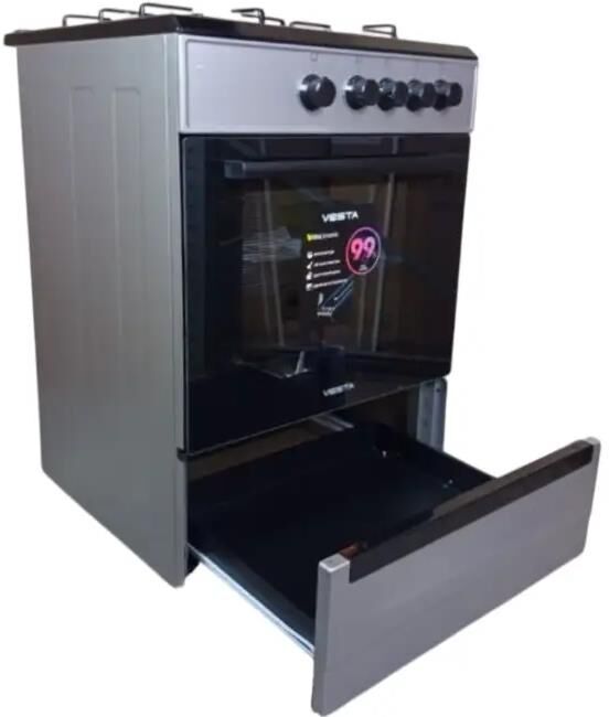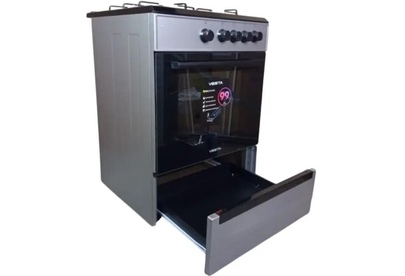 Горелки стола: Газовые – 4 шт. Ящик для посуды - выдвижной. Мощность горелок рабочего стола: -Горелка передняя левая/правая – 2,0/2,4 кВт. -Горелка задняя левая/правая – 2,0/1,0 кВт. -Мощность горелки духовки – 2,5 кВт. Объем духовки в литрах: 65 л. Нижний/верхний нагреватель духовки – газ. Газ-контроль духовки. Решетка рабочего стола – сталь. Щиток. Элементы комфортности: Термометр духовки. Противень – 1 шт. Масса нетто/брутто – 36/40 кг.