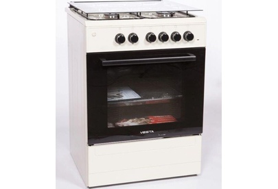 Ширина плиты, см 60; Глубина плиты, см 60; Объем духовки, л 65; Высота, см 85; Тип управления: Механическое; Материал решеток: Чугун; Горелки стола: газовые - 4 шт; Духовка: электрическая; 3 режима духовки; Съемное стекло дверцы духового шкафа; Электроподжиг конфорок; Термостойкое каленое стекло; Стеклянная крышка рабочего стола; Индикатор работы ТЭНа; Решетка рабочего стола: сталь; В комплекте противень: 2шт