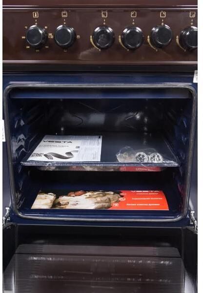 Горелки стола: Газовые – 4 шт. Мощность горелок рабочего стола: Горелка передняя левая/правая – 2,0/2,4 кВт. Горелка задняя левая/правая – 2,0/1,0 кВт. Электрический духовой шкаф. Объем духовки в литрах: 65 л. Верхний/нижний нагреватель духовки – тен.Решетка рабочего стола – сталь. Крышка рабочего стола – стекло. Термометр духовки. Кнопка электророзжига горелок стола. Электрическая подсветка духовки. Противень – 2 шт.