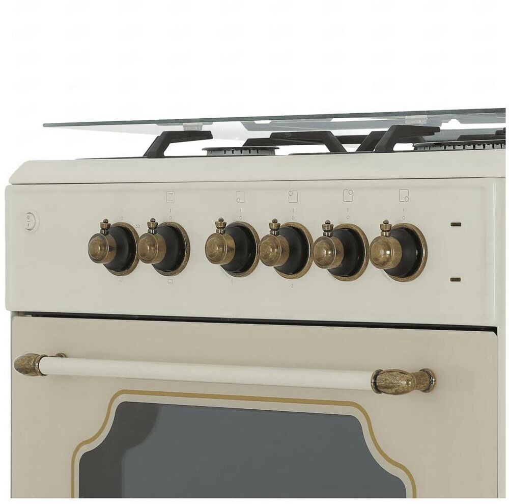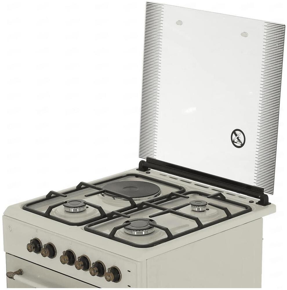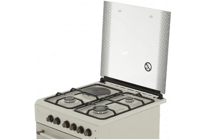 Габариты и вес: Ширина 60 см, Высота 83.5 см, Глубина 60.5 см, Вес 40 кг * Горелки стола: Газовые 3 шт. Электр. 1 шт. Мощность горелок рабочего стола: -Горелка передняя левая/правая 2,0/2,4 кВт. Горелка задняя левая, электрическая 1,5 кВт. Горелка задняя правая 1,0 кВт. Решетка рабочего стола чугун. Крышка рабочего стола стекло. Верхний нагреватель духовки ТЭН. Нижний нагреватель духовки ТЭН. Электророзжиг при помощи кнопки. Электрическая подсветка духовки. Термостат, Индикатор работы электроконфорок. Индикатор работы ТЭНа духовки. Противень 2 шт.