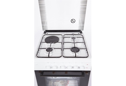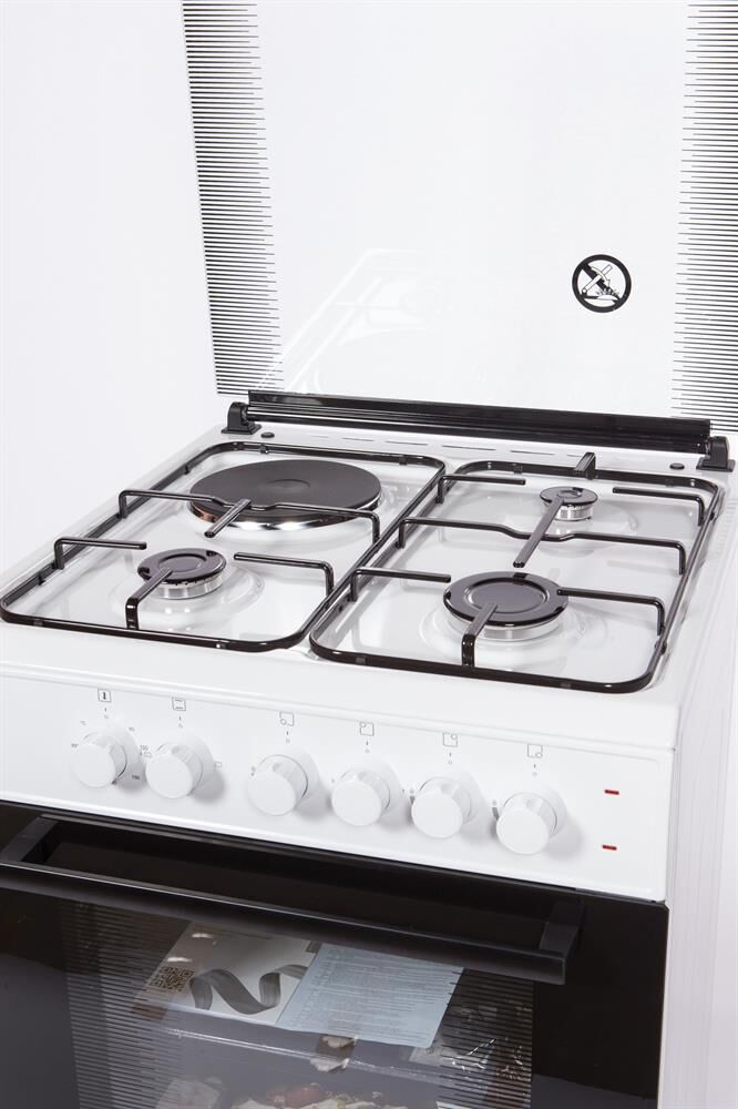 ШхВхГ: 50х85х60 см; Цвет: белый; Тип духовки: электрическая; Тип варочной панели: комбинированная; 3 горелки -газовые, 1горелка - электрическая; Дополнительные функции: термостат; Особенности конструкции: подсветка духовки; Электроподжиг