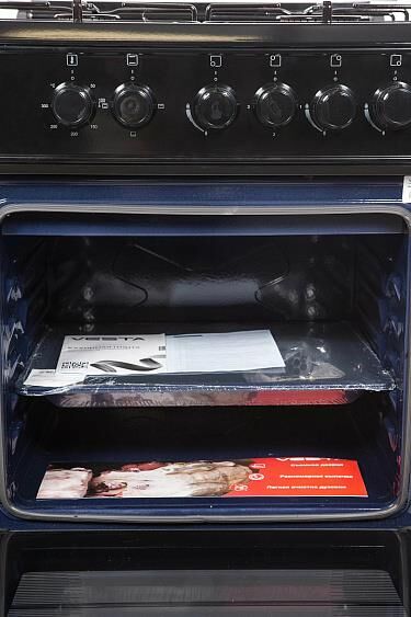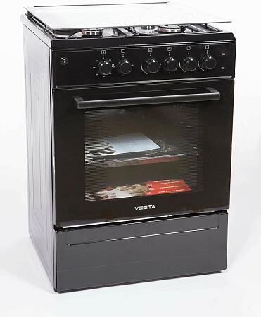 Цвет: чёрный; Тип: комбинированная плита; Тип установки: отдельностоящая; Материал варочной поверхности: эмалированная сталь; Материал решеток: эмалированная сталь; Тип внутреннего покрытия: эмаль; Тип варочной поверхности: комбинированная; Количество газовых конфорок: 3 шт; Количество электрических конфорок: 1 шт; Размер конфорок: 55 мм, 75 мм, 100 мм, 190 мм; Мощность конфорок: 1.9 кВт, 2.3 кВт, 3.3 кВт, 1.5 кВт; Тип электроподжига: механический; Тип духовки: электрическая; Объем духовки: 65 л; Диапазон температур: от +50°С до +300°С; Количество уровней готовки: 5 уровней; Количество режимов духовки: 3 шт; Режимы духовки: верхний нагрев, верхний нагрев + нижний нагрев, нижний нагрев; Система очистки: традиционная; Тип управления: механическое; Тип переключателей: поворотные; Внутреннее освещение; Количество стекол дверцы: 2 шт; Класс энергопотребления: А; Напряжение: 220-240 В