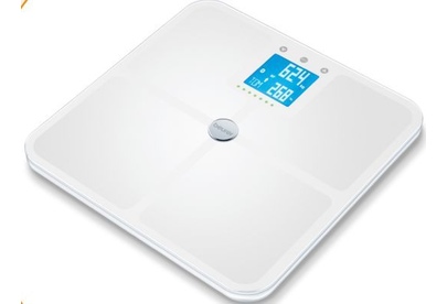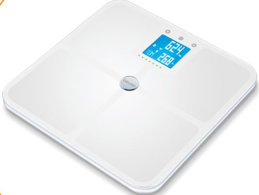 Подключение смартфона к весам через бесплатное приложение Beurer HealthManager. Автоматическая передача данных при помощи технологии Bluetooth® после запуска приложения. Расчет массы тела, доли жировой массы, тканевой жидкости, мышечной массы, массы костей и индикация калорий, скорости активного/основного обмена веществ и ИМТ. Память на 8 пользователей с автоматическим распознаванием пользователя. Большой 2-строчный ЖК-дисплей с подсветкой в зависимости от достигнутого результата. Дополнительный режим: беременность. Платформа XL 32*32 см. Максимальный вес: 180 кг.