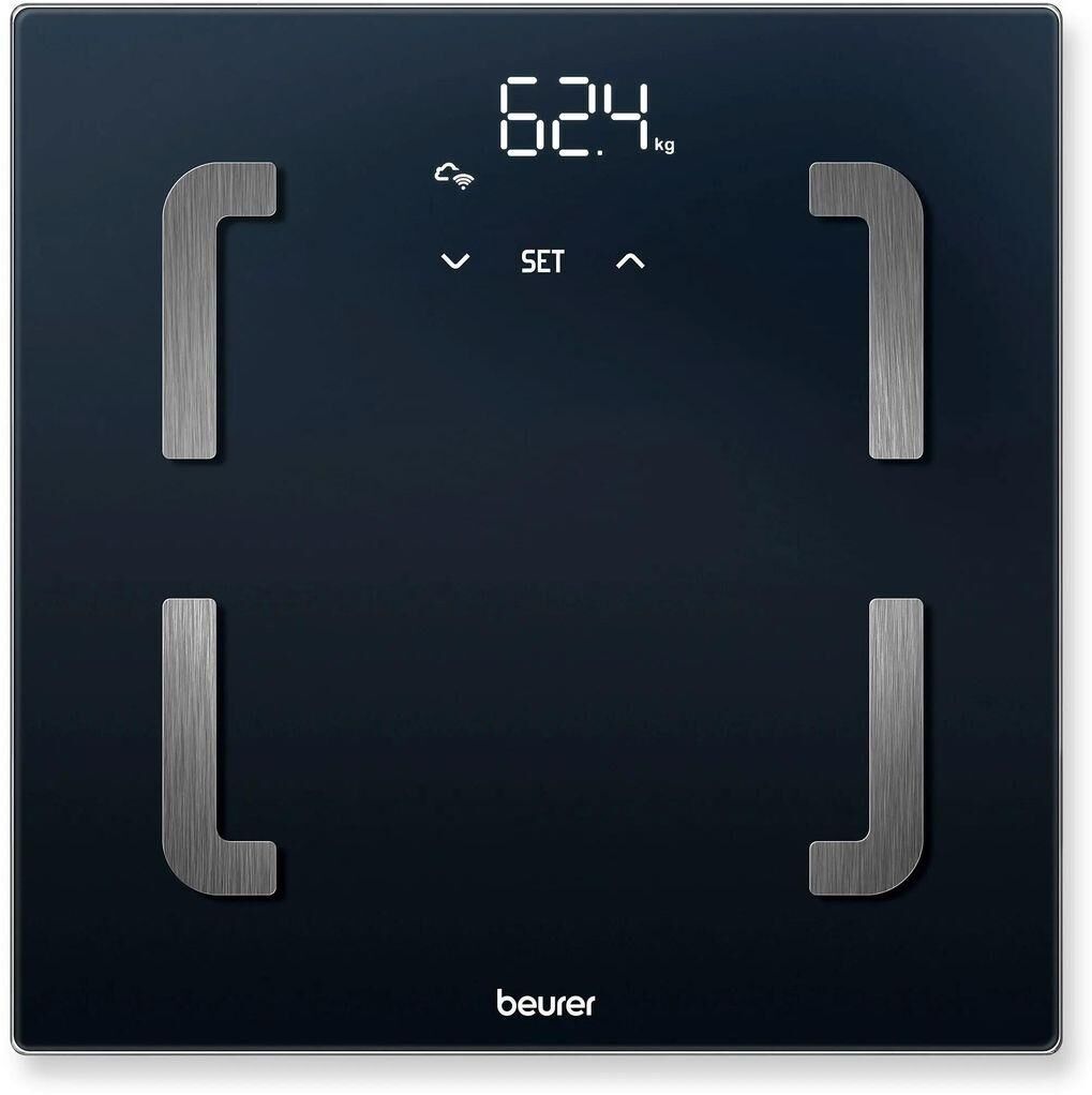 Тип: электронные. Диагностические весы: да. Материал платформы: стекло. Максимальная нагрузка: 180. Погрешность измерения: 100. Ячейки памяти: 8. Цена деления: 100. Автоматическое включение/отключение: есть. Особенности: Быстро и просто: Bluetooth® для начальной настройки/WIFI для автоматической передачи данных. Автоматическая синхронизация: данные каждого взвешивания автоматически загружаются через WIFI.. Умные весы: да. Габариты упаковки (ед) ДхШхВ: 0.33x0.321x0.041. Вес упаковки (ед): 2.47. Мобильное приложение: beurer HealthManager Pro. Высота цифр дисплея: 28. Синхронизация со смартфоном: Bluetooth/Wi-fi. Гарантия: 36 мес.. Питание: 3 х АА. Цвет: черный. Размеры (ШхГхТ): 300 х 300 х. Дополнительные измерения параметров тела: определение доли воды, определение доли жировой ткани, определение доли костной ткани, определение доли мышечной ткани, расчет ИМТ, расчет нормы калорий. Единицы измерения: килограммы, фунты. Индикация: заряда батареи, перегрузки. Конструктивные особенности: подсветка дисплея. Погреш