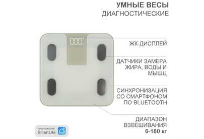 Умные диагностические весы HALSA предназначены для комплексного измерения различных физиологических показателей. После использования весы сохраняют данные и анализируют показатели тела. Специальное приложение на смартфоне отображает наглядный график ИМТ (индекса массы тела) и создает индивидуальный дневник вашего веса. Предусмотрена функция Bluetooth-соединения с мобильным телефоном. Весы оснащены четырьмя противоскользящими накладками для обеспечения безопасности. Изготовлены из прочного закаленного стекла, несмотря на тонкость легко выдерживают вес до 180 кг. Умное устройство автоматически включится, как только вы встанете на платформу. И самостоятельно выключится, когда вы с нее сойдете. Весы оснащены большим LCD-дисплеем с четким и контрастным изображением. Превосходное качество экрана позволяет пользоваться весами в условиях любой освещенности, даже в полной темноте.