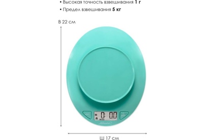 ATLANTA ATH-6199 (GREEN) Пластиковая рабочая поверхность, максимальный вес 5 кг с шагом 1 г, LED-дисплей. ПОЛНОСТЬЮ ЭЛЕКТРОННЫЙ Полностью электронный принцип взвешивания на высокоточных сенсорах гарантирует точность измерения веса, а благодаря отсутствию механических механизмов, весы прослужат многие годы.