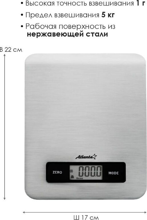 Весы кухонные ATLANTAATH-6196 (SILVER)