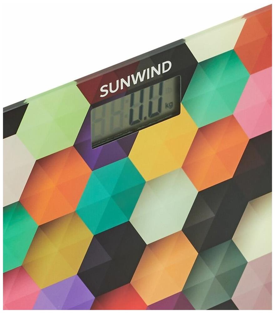 Напольные весы SUNWIND SSB053, до 180кг, цвет: рисунок Тип электронные Описание Электронные весы SUNWIND SSB050 простой и удобный способ контролировать свой вес. Материал корпуса весов - закаленное стекло, которое способно выдержать нагрузку до 180 кг, при этом точность измерения достигает 100 г. При перегрузке срабатывает индикатор. Питание весов от батарейки типа CR2032. Максимальная нагрузка 180 кг Цена деления 100 г Погрешность измерения 100 г Измерение в килограммах есть Особенности Автоматическое включение/отключение есть Индикатор перегрузки есть