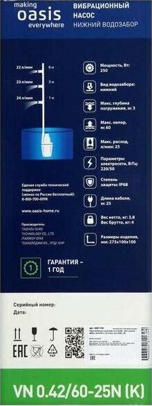 Вибрационный насос OASIS VN 0.42/60 - 25N - нижний забор