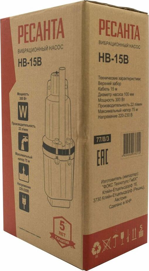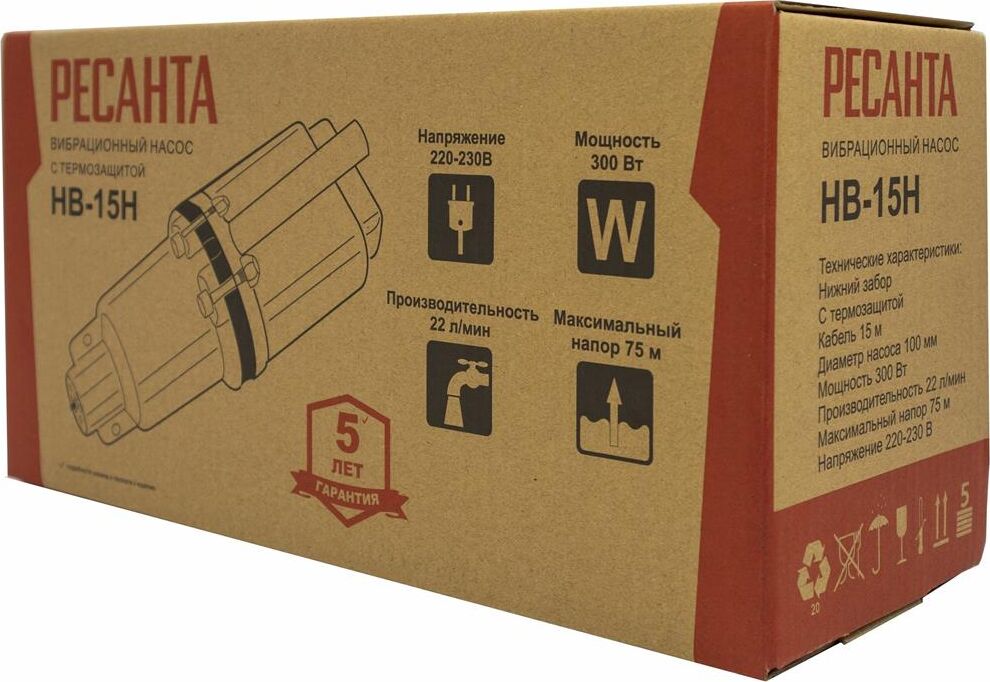 Вибрационный насос РЕСАНТА Насос садовый НВ-15Н 300Вт 1320л/час вибрационный (77/8/4)