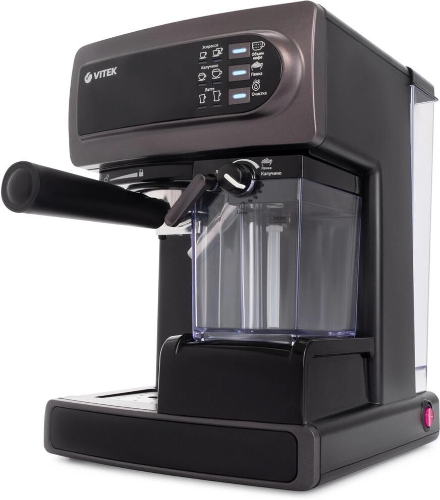 Кофеварка рожковая. Мощность: 1238 Вт, Давление помпы: 15 Бар, Тип кофе: молотый, Функции: подача пара, настройка размера порций, настройка крепости кофе, Встроено: капучинатор, Материал корпуса: пластик. Цвет: