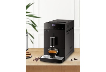 Кофемашина автоматическая. Мощность: 1100-1350 вт, Давление помпы: 20 бар, Съемный резервуар для воды: 1,2 литра, Программирование объёма порции кофе, Одновременное приготовление двух чашек, Емкость контейнера для зерен, Индикатор уровня воды, Индикация включения, Контейнер для отходов, Контроль крепости кофе, Подача горячей воды, Подогрев чашек, Подсветка дисплея, Приготовление эспрессо, Регулировка порции горячей воды, Регулировка степени помола, Регулировка температуры кофе, Съемный лоток для сбора капель, Автоматическая декальцинация, LED-Дисплей, Встроенная кофемолка, Материал корпуса: пластик, Особенности: Приготовление эспрессо, американо и горячей воды одним касанием дисплея / Встроенная жерновая кофемолка с 5 степенями помола, Регулировка жесткости воды, ип используемого кофе: зерновой, Итальянская помпа фирмы ARS, Цвет: Черный