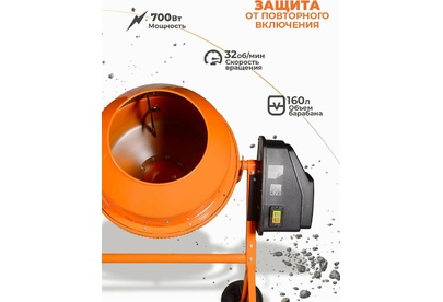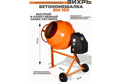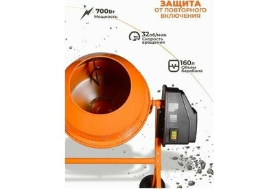 Бетомешалка ( 650 вт, венец/чугун, диаметр-375мм, объем-160 л, вес 60 кг )