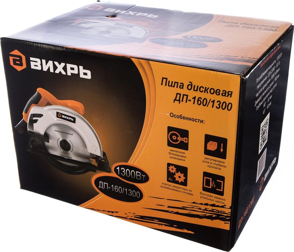 Вес 4,4кг, Max глубина пропила под углом 90° 52 мм, Мощность 1300Вт, возможность работы с направляющей шиной, Посадочный диаметр диска 20мм, Класс товара Бытовой, Диаметр 160мм, Наличие патрубка для подключения пылесоса, Max глубина пропила под углом 45° -32 мм, Число оборотов 4500 об/мин,