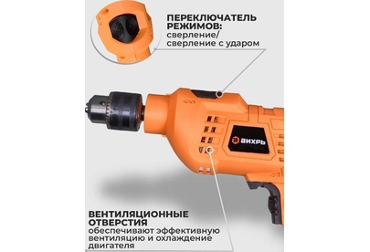 дополнительная рукоятка, ограничитель глубины сверления, блокировка кнопки включения