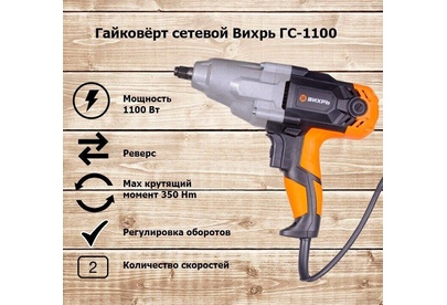 ВИХРЬ Гайковерт ГС-1100 1100Вт патрон:квад.1/2" (кейс в комплекте) (72/24/1)