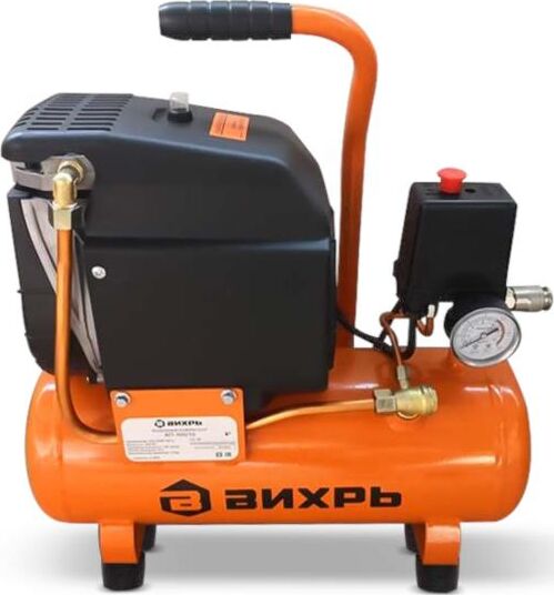 ВИХРЬ Компрессор поршневой КП-165/10 безмасляный 165л/мин 10л 950Вт оранжевый/черный