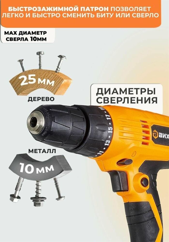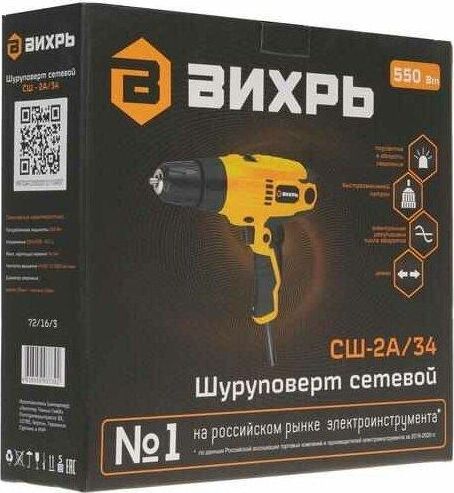 ВИХРЬ Шуруповерт СШ-2А/34 550Вт патрон:быстрозажимной (72/16/3)