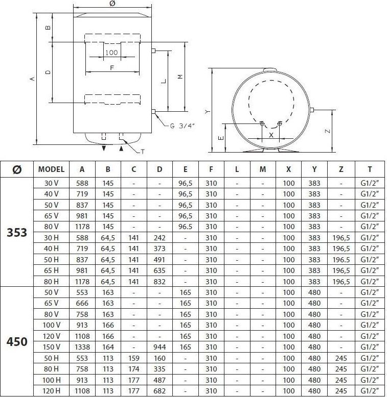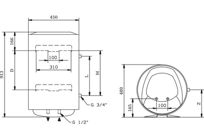 Тип Накопительный. Объем л 100. Мощность кВт 1,5. Количество режимов нагрева шт 1. Время нагрева всего объема (T=45°С) ч, мин 3 ч 52 мин. Тепловые потери при T=60°С кВт•ч за 24 ч 1,39. Максимальная температура нагрева воды °С 75. Минимальное давление воды бар 0,2. Максимальное давление воды бар 8. Напряжение В 230. Показ температуры нагрева Термометр. Управление температурой нагрева Ручка регулировки. Электропитание Кабель питания с УЗО. Длина электрического кабеля м 1,0. Класс защиты IP IPX3. Вход холодной воды " 1/2. Выход горячей воды " 1/2. Расстояние между входом холодной воды и выходом горячей воды мм 100.