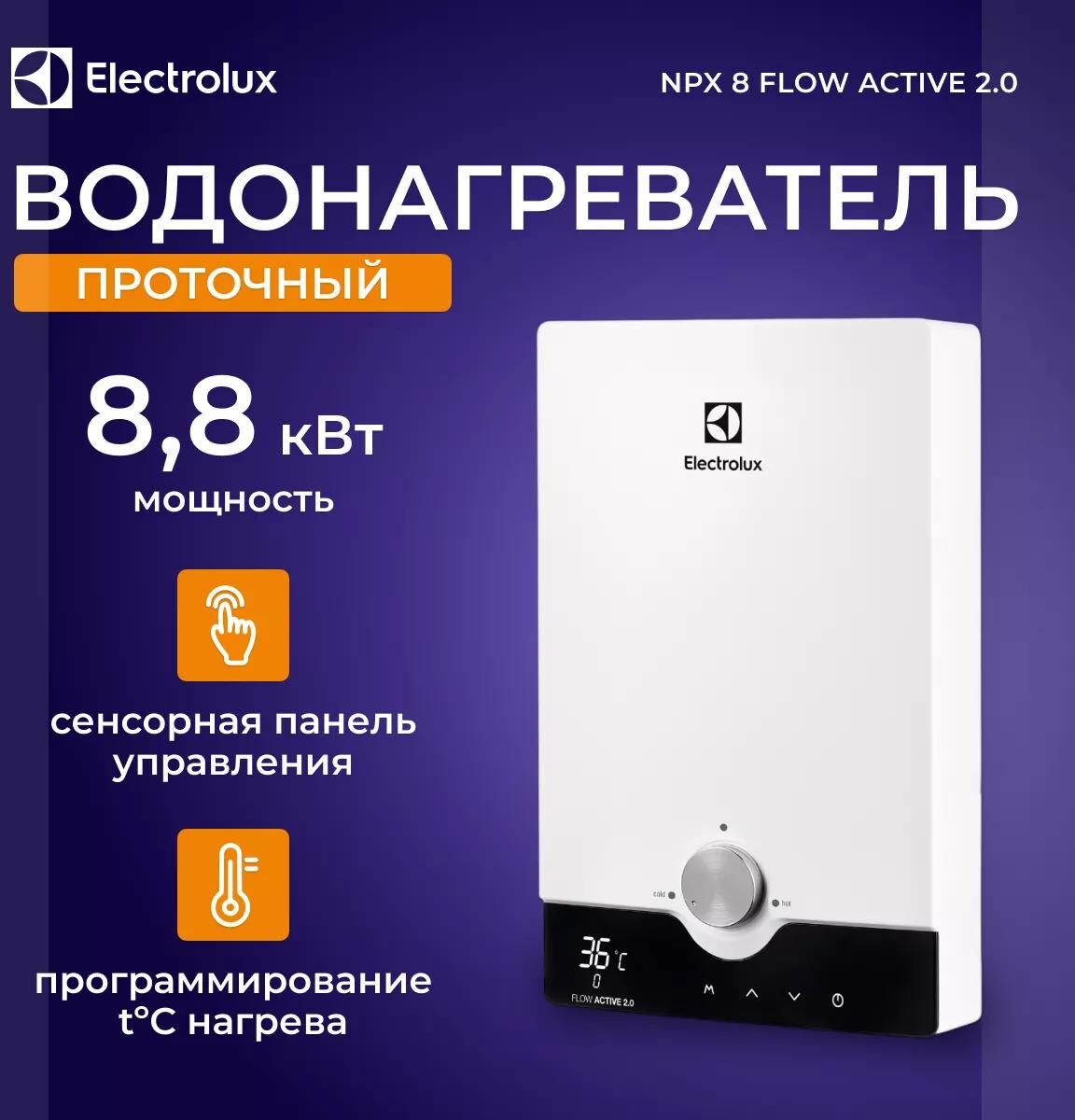 Водонагреватель проточный электрический ELECTROLUX Проточный водонагреватель NPX 8 Flow Active 2.0