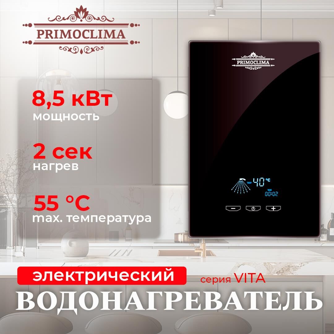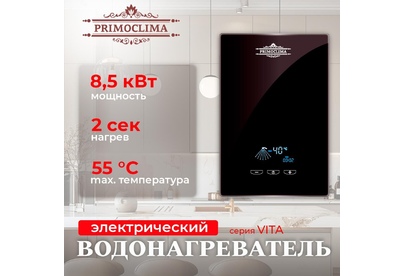 Водонагреватель проточный электрический PRIMOCLIMA Электрический проточный воданагреватель VITA 8.5 кВт, черный