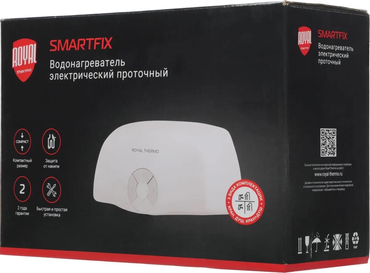 Водонагреватель проточный электрический ROYAL THERMO Водонагреватель Smartfix TS 5.5кВт электрический настенный/белый