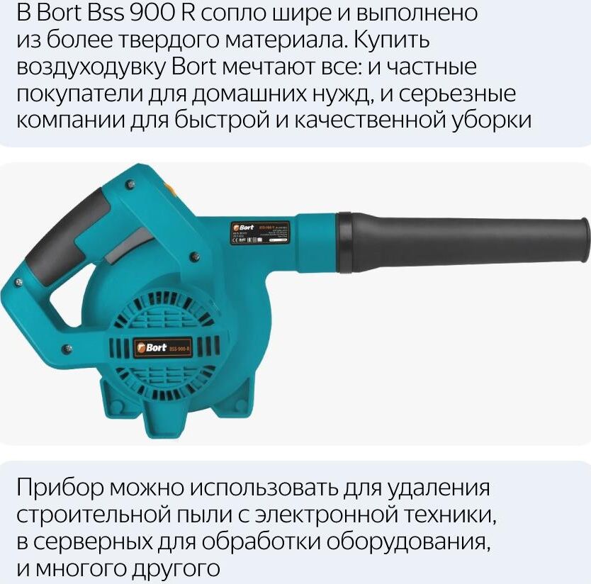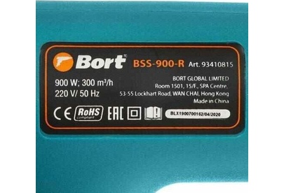 Вес брутто, кг: 2,58. Вес изделия, кг: 1,8. Вес нетто, кг: 2,58. Габариты упаковки, см: 35,5 x 19,5 x 22,5. Гарантия, г: 2. Длина кабеля, м: 2. Максимальная производительность, м3/час: 300. Модель: BSS-900-R. Напряжение, В: 220. Потребляемая мощность, Вт: 900. Расширенная гарантия, г: 5. Регулировка скорости. Скорость холостого хода, об/мин: 0...16 000. Тип пылесоса: Воздуходувка. Уровень шума, дБ: 75. Функция выдува: Да. Частота тока, Гц: 50.