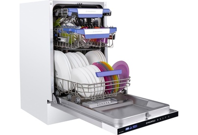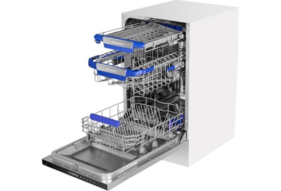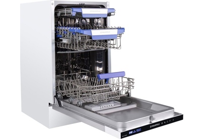 Встраиваемая посудомоечная машина. Количество комплектов 10. Сушка конденсационная. Габариты В/Ш/Г 81.5/44.8/55 см. Цвет нержавеющая сталь. Элементы управления сенсорные. Дисплей LED. Количество программ 8. Количество температурных режимов 5. Отсрочка старта 1-24часа. Количество корзин для посуды 2. Верхняя корзина регулируется по высоте. Корзина для столовых приборов выдвижной лоток. Защита от протечек полный AQUA-STOP. Внутреннее освещение. Комплектация: сливной и заливной шланг, воронка для соли, держатель для шланга. Максимальный расход воды за цикл, 8л. Класс энергопотребления А++. Вес, 32,7кг.