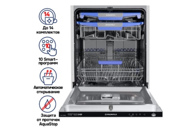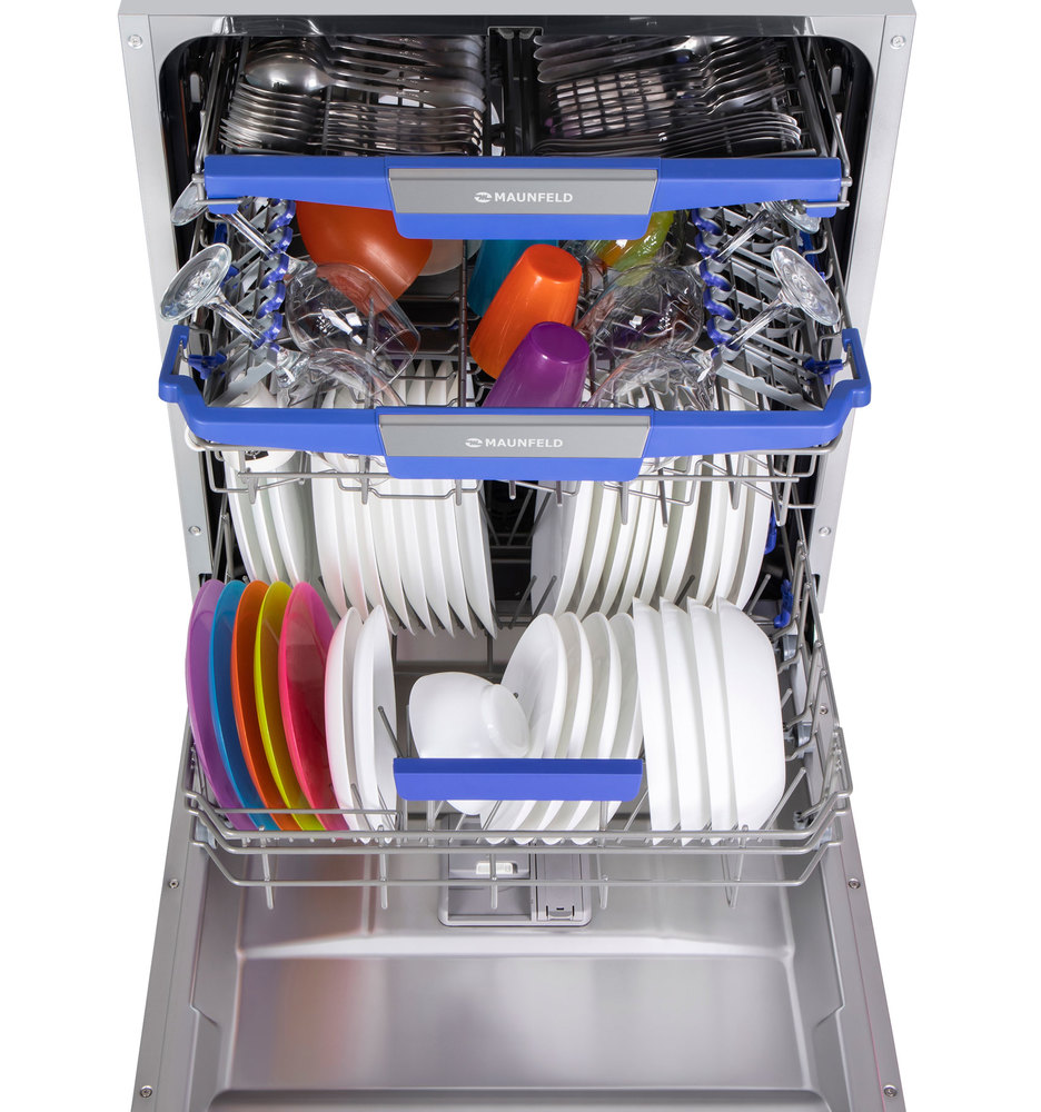 Посудомоечная машина Maunfeld MLP-12IMRO вместимостью в 14 комплектов идеально подойдет для семьи из 5 человек. Класс энергопотребления А++ и потребление 10 л воды за цикл делают модель экономичной в эксплуатации. Данная модель выполнена в белом цвете, что гарантирует вам, что она идеально впишется в любой интерьер. Белый дизайн не только классика, но и современность. Имеется возможность использования средств «3 в 1». Это значит, что посудомоечная машина оснащена технологией распознавания формы добавленного моечного средства. При использовании трехкомпонентной таблетки или капсулы прибор скорректирует программу так, чтобы каждый из компонентов был задействован своевременно. Всего в машину встроено 8 программ и 5 температурных режимов, среди которых интенсивная, автоматическая, экономичная, замачивание, стекло. Быстрая программа позволяет добиться превосходных результатов мытья и сушки посуды всего за 58 минут. Посудомоечная машина Маунфелд MLP-12IMRO оборудована конденсационной сушкой. При ней ра