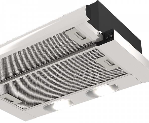 встраиваемая в шкаф, ширина встраивания: 60 см, режимы работы: отвод / циркуляция, производительность: 400 куб.м/ч, количество двигателей: 1