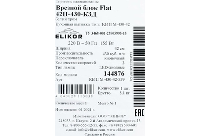 Встраиваемая вытяжка ELIKOR Врезной блок FLAT 42П-430-К3Д белый/хром