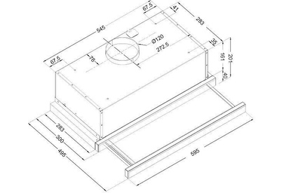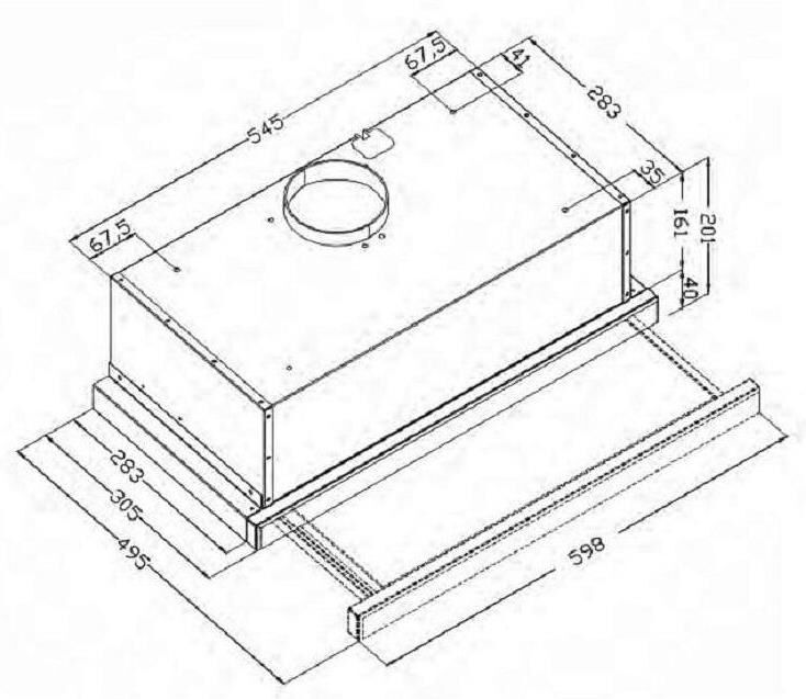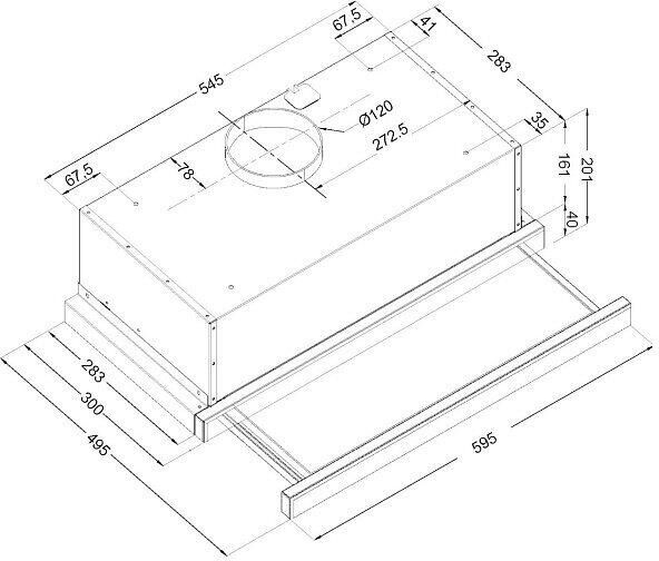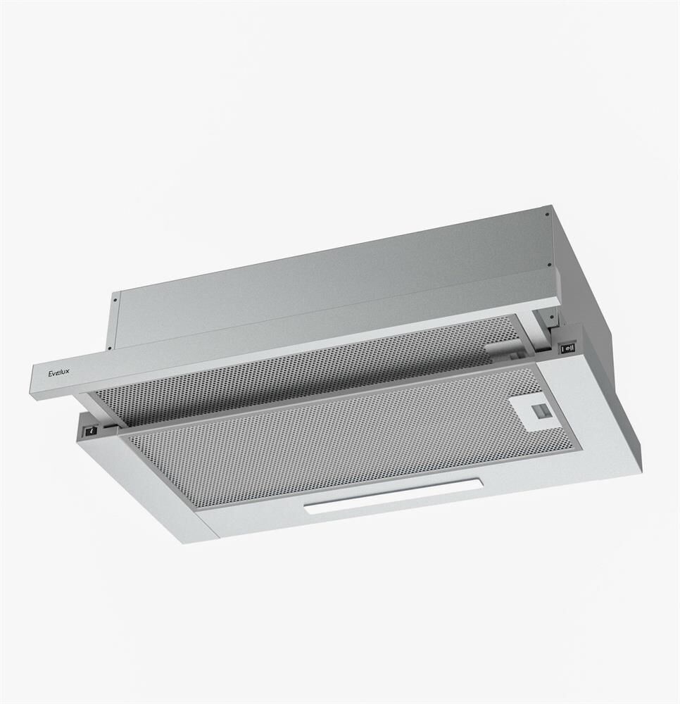 Встраиваемая телескопическая вытяжка, 60 см, отвод/циркуляция, механический контроль, 2 скорости работы, производительность 670 м³/ч, LED освещение, нержавеющая сталь, 598х305-495х201 мм