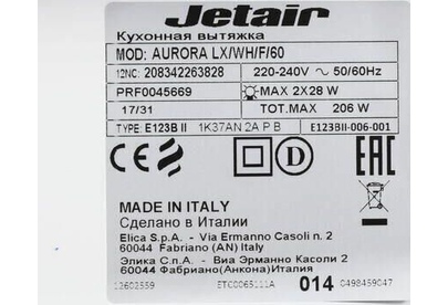 Встраиваемая вытяжка JET AIR AURORA LX/WH/F/60 Белый (PRF0045669)