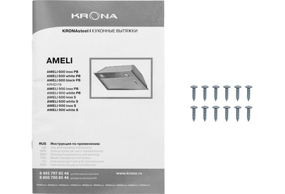 Встраиваемая вытяжка KRONA AMELI 600 white pb