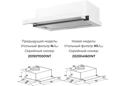 Свободный выход 570 — 650 м?/ч Вентиляция 490 – 570 м?/ч Рециркуляция 410 – 490 м?/ч Уровень шума 38 – 48 дБ Отделка Окрашенная сталь Количество скоростей 2 Управление Клавишное Освещение LED лампы 1 х 2,5 Вт Фильтр Алюминиевый (в комплекте), Угольный фильтр N/N1 * (х2) (опция) – *Фильтр N1 для моделей с серийными номерами начиная с 2020041601NT и далее Опции Мотор усиленной мощности, Тихий режим работы Диаметр воздуховода 120 мм Потребляемая мощность 102,5 Вт Давление 210 Па Ширина 500 мм Цвет White Вес в упаковке / без упаковки 6,5 кг / 5.5 кг Страна-производитель КНР Размер упаковки 335х565х225 мм.
