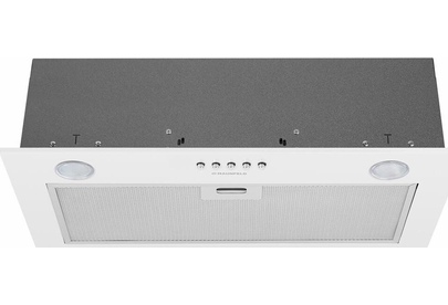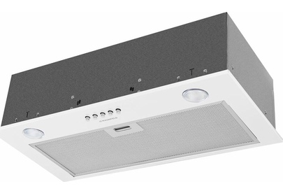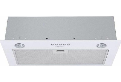 Вытяжка встраиваемая. Цвет белый. Габариты В/Ш/Г 16,7/59,8/29,6см. Режимы работы: отвод, рециркуляция. Тип управления электронное. Тип переключателей кнопки. Количество скоростей 3. Периметрическая система всасывания P.A.S. Тип освещения галогеновое. Жировой фильтр алюминиевый. Антивозвратный клапан. Производительность, 850куб м/час. Класс энергопотребления В. Потребляемая мощность,190 Вт. Уровень шума, 48дБ.