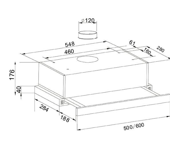 Вид установки встраиваемая Бежевый, Ширина 500мм, Воздушный поток 500 м/ч, 2 стандартные лампы, Мощность освещения 2x25 Вт, 2 aлюминиевыйх фильтра, необходимое количество угольных фильтров - 2 шт, Модель угольного фильтра FU-24, Уровень шума 34-50 дБ, управление - тумблер, Вес нетто 6,5 кг, Китай