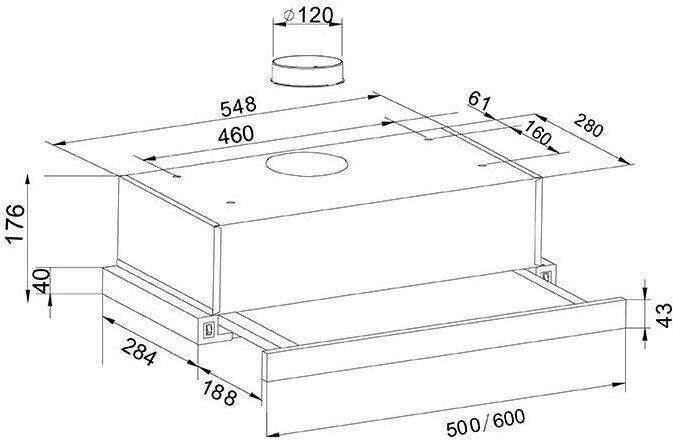 Вид установки встраиваемая Нержавеющая сталь, Ширина 500мм, Воздушный поток 500 м/ч, 2 стандартные лампы, Мощность освещения 2x25 Вт, 2 aлюминиевыйх фильтра, необходимое количество угольных фильтров - 2 шт, Модель угольного фильтра FU-24, Уровень шума 34-50 дБ, управление - тумблер, Вес нетто 6,5 кг, Китай