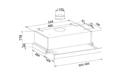 Вид установки встраиваемая Нержавеющая сталь, Ширина 600мм, Воздушный поток 500 м/ч, 2 стандартные лампы, Мощность освещения 2x25 Вт, 2 aлюминиевыйх фильтра, необходимое количество угольных фильтров - 2 шт, Модель угольного фильтра FU-20, Уровень шума 34-50 дБ, управление - тумблер, Вес нетто 7 кг, Китай