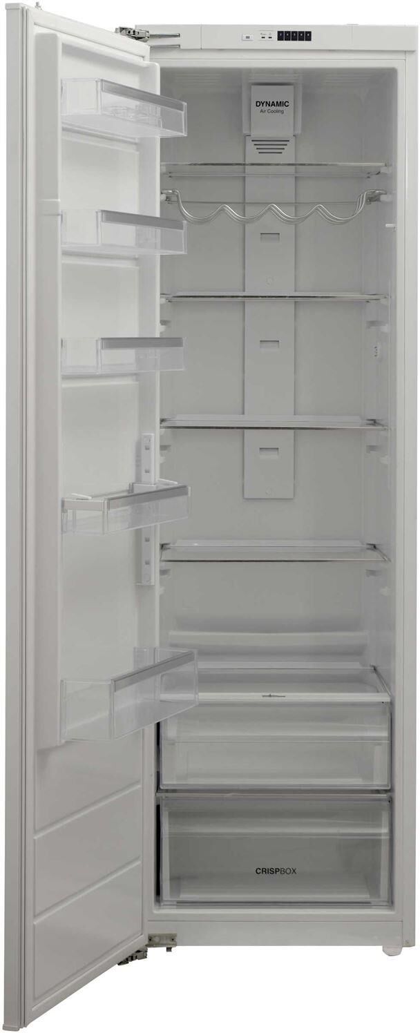 Встраиваемая холодильная камера, Электронное управление, Класс энергопотребления: А+, Динамическая система охлаждения Dynamic Air Cooling, Режим «Супер охлаждение», LED освещение камеры, Большой ящик для овощей CrispBox, Ящик для фруктов и овощей с регулятором влажности, полки из закаленного стекла, Металлическая полка для 4 бутылок, Жесткое крепление двери, Перенавешиваемая дверь, Объем холодильного отделения: 300 л, Габаритные размеры (в/ш/г), 1770х540х545 мм
