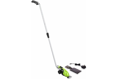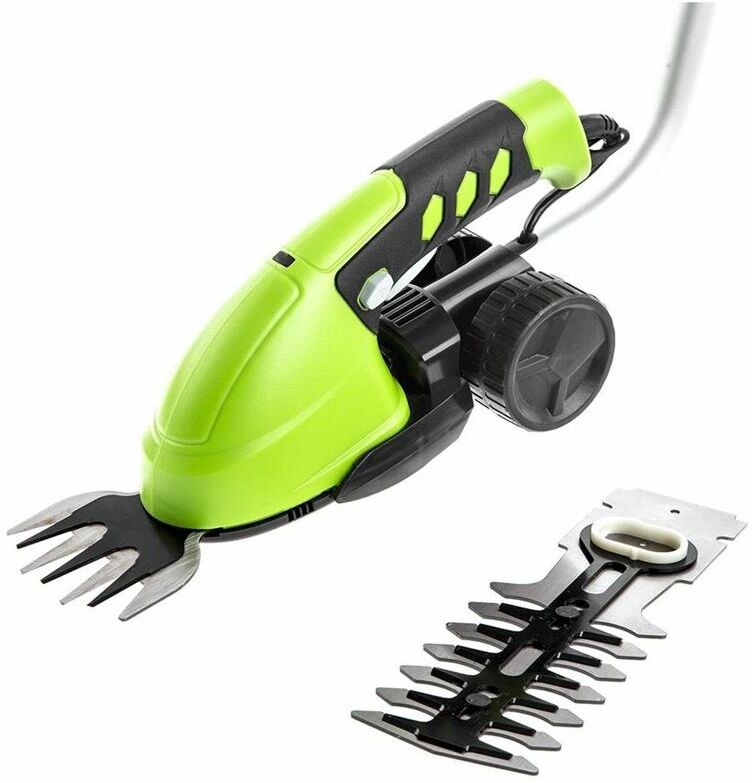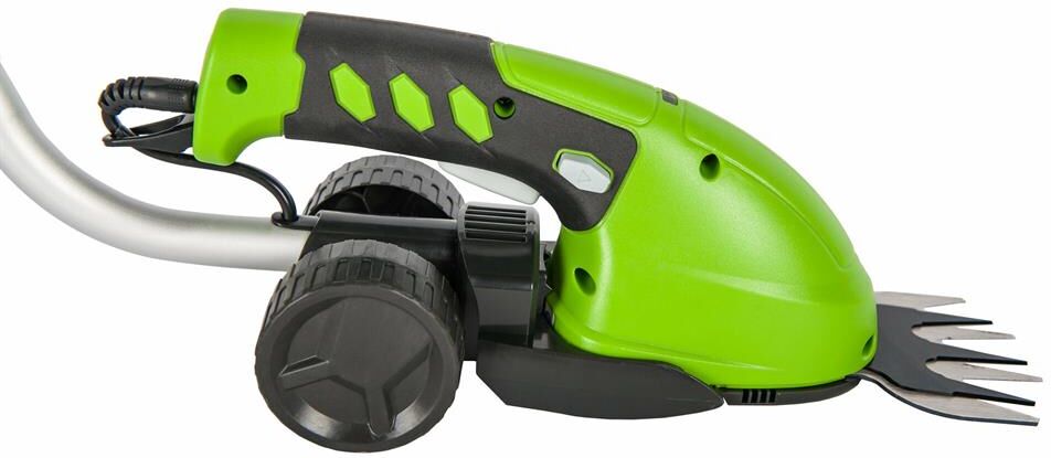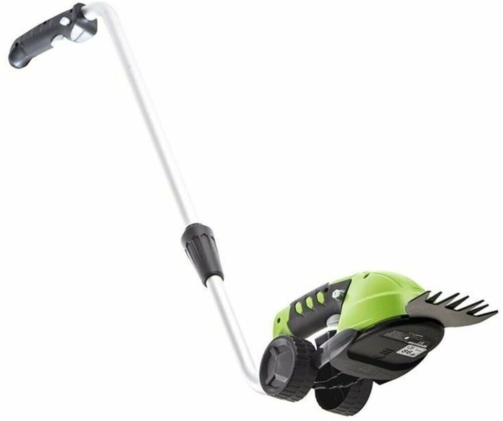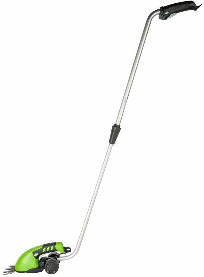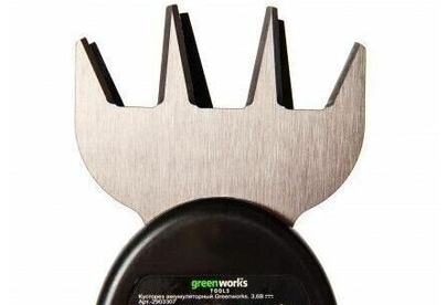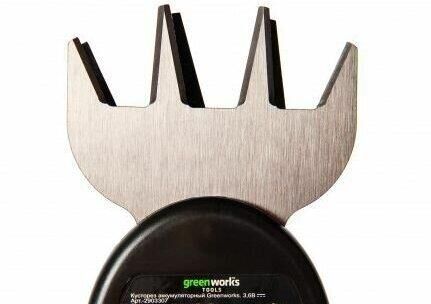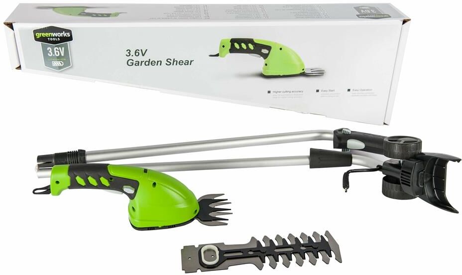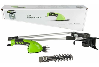 Длина основного ножа для кустов: 75. Ширина ножа для травы: 24. Тип электропитания: от аккумулятора. Емкость аккумулятора: 2. Напряжение аккумулятора: 3.6. Тип аккумулятора: Li-Ion. Индикатор заряда батареи: нет. Антиблокировочная система: нет. Защитное устройство ножа: нет. Защитный тормоз: нет. Ножи с алмазной заточкой: нет. Смена ножей без инструмента: нет. Комплект ножниц для травы и кустов: нет. Вес товара: 0.7. Комплект поставки: Ножницы аккумуляторные Greenworks G3,6GS 3,6V, Лезвие для травы с чехлом; Лезвие - кусторез с чехлом; Штанга - удлинитель; Зарядное устройство; Руководство по эксплуатации; Гарантийный талон.. Аккумулятор в комплекте: есть. Зарядное устройство в комплекте: есть. Габариты упаковки (ед) ДхШхВ: 0.75x0.23x0.12. Вес упаковки (ед): 4.5. Гарантия: 12 мес.. Ширина ножа для травы: 24 мм. Вес: 0.7 кг. Длина основного ножа для кустов: 75 мм. Электропитание: от аккумулятора. Аккумулятор: Li-Ion, 3.6 В; 2 Ач
