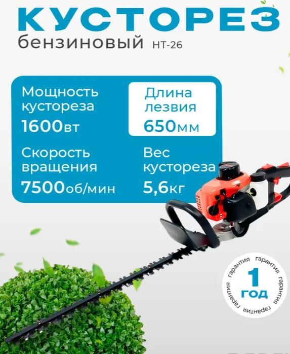 "Длина лезвия:650мм Запуск ручной стартер Мощность, л.с 1 лс Обороты, об/мин 7500 Объем двигателя, см³ 22,5 Объем топливного бака, л 0,6л Поворотная ручка да Тип двигателя бензиновый, 2-тактный с воздушным охлаждением Тип ножа двусторонний Толщина реза 12 мм Уровень шума 95дБ Мощность, Вт 1600"" 1)Высокая производительность 2)Удобство в работе 3)Поворотная ручка"
