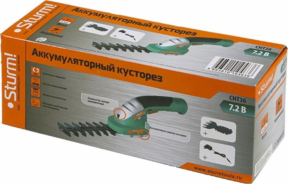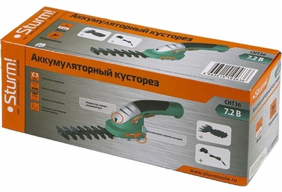 Высоторез STURM CHT36 Кусторез аккумуляторный 7.2В, 1.5Ач, 2в1, длина реза 120мм, ЗУ, короб