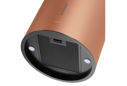 Вытяжка Maunfeld LEE ISLA 39 COPPER — это высококачественное кухонное оборудование, произведенное в Польше. Она представляет собой потолочную островную вытяжку, которая идеально дополняет любой современный кухонный интерьер благодаря своему стильному медному цвету и элегантной цилиндрической форме корпуса. С высотой от 110 до 147.5 см, шириной и глубиной по 38 см, эта вытяжка способна эффективно очищать воздух на кухне площадью до 20 квадратных метров. Ее производительность составляет 1000 кубических метров в час, что обеспечивает быстрое и качественное удаление всех нежелательных запахов. Модель оснащена электронным типом управления с кнопочными переключателями и четырьмя скоростями работы, что позволяет выбрать оптимальный режим для любой ситуации. Благодаря периметрической системе всасывания P.A.S., вытяжка обеспечивает максимально эффективное удаление воздуха. Дополнительные функции включают таймер, что позволяет задать время работы устройства, и две светодиодные лампы мощно