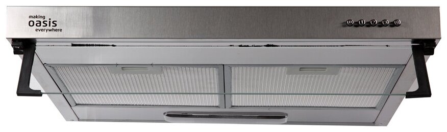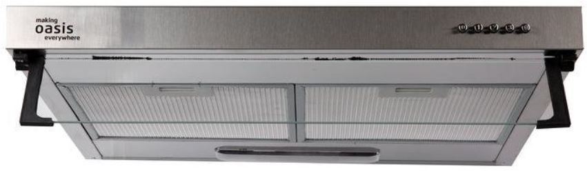 Нержавеющая сталь, Ширина 600мм, Воздушный поток 400 м?/ч, стандартная лампа, Мощность освещения 1x28 Вт, 2 aлюминиевыйх фильтра, необходимое количество угольных фильтров - 2 шт, Модель угольного фильтра VU-02, Уровень шума 44 дБ, управление -кнопочное, Вес нетто 5,3 кг, Турция