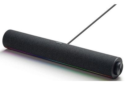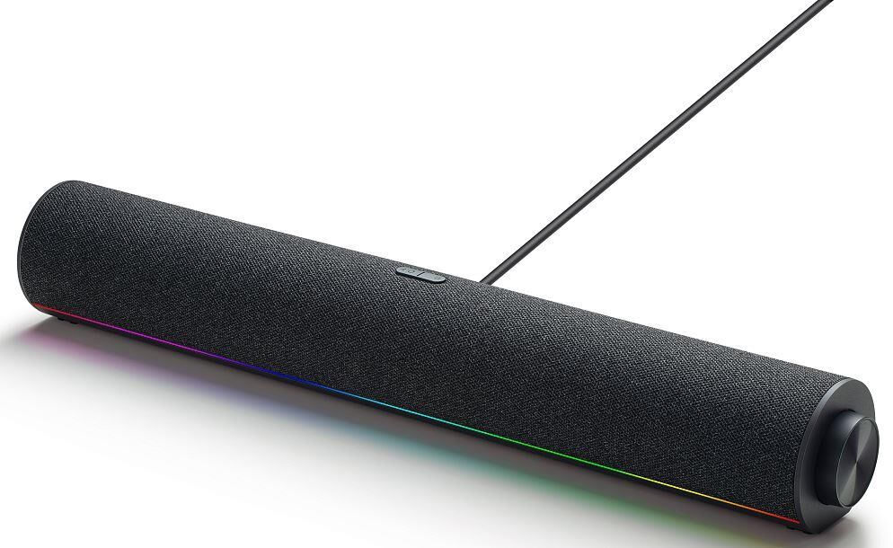 Акустическая конфигурация из 4 колонок. Большой полнодиапазонный динамик с мощными басами. Два канала обеспечивают стереоэффект. Охват большой площади с локализацией звука. Премия Red Dot Design Award. Несколько режимов звука. Подходят для музыки, игр, фильмов и многого другого. Цветной окружающий свет RGB. Динамическое освещение, пульсирующее в такт музыке. Встроенная многофункциональная ручка. Простое управление одним поворотом. Захватывающий звук на 53°. Наклоните вверх, чтобы создать идеальное настольное устройство для прослушивания. Технические характеристики Размеры изделия: 435 x 67 x 67 мм Вес: 670 г Разъемы: USB-A, USB-C Bluetooth: 5.3 (поддерживает воспроизведение звука A2DP и звонки по Bluetooth) Номинальный вход: 5V?2A Содержимое упаковки: Колонка звуковая, Руководство пользователя