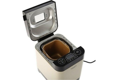 Параметры Номинальная потребляемая мощность 500 Вт Вес выпечки 500/750?г Объем формы для выпечки 0,7 л Объем?мерного?стакана 0,2?л Описание Прибор предназначен для выпекания хлебобулочных изделий, замеса теста для последующей выпечки в духовке, а также для приготовления джема и варенья в бытовых и аналогичных условиях Корпус из высококачественной нержавеющей стали и пластика Цвет: золотистый с черным Форма для выпечки и тестомешалка с антипригарным покрытием Сенсорная панель управления LCD-дисплей Мерный стакан 200 мл Двухсторонняя мерная ложка: 1 чайная ложка и 1 столовая ложка Функция «Отложенный старт» до 13 часов Функция сохранения тепла «Автоподогрев» 1 час Энергонезависимая память до 10 минут Выбор веса выпечки: 500 г/750 г Выбор цвета корочки: светлая, средняя, темная Возможность добавления дополнительных ингредиентов Звуковые сигналы, сопровождающие процесс приготовления 13 автоматических программ выпечки?и?приготовления: белый хлеб французский хлеб цельнозерновой хлеб быстрая выпечка сдоба ультрабыст